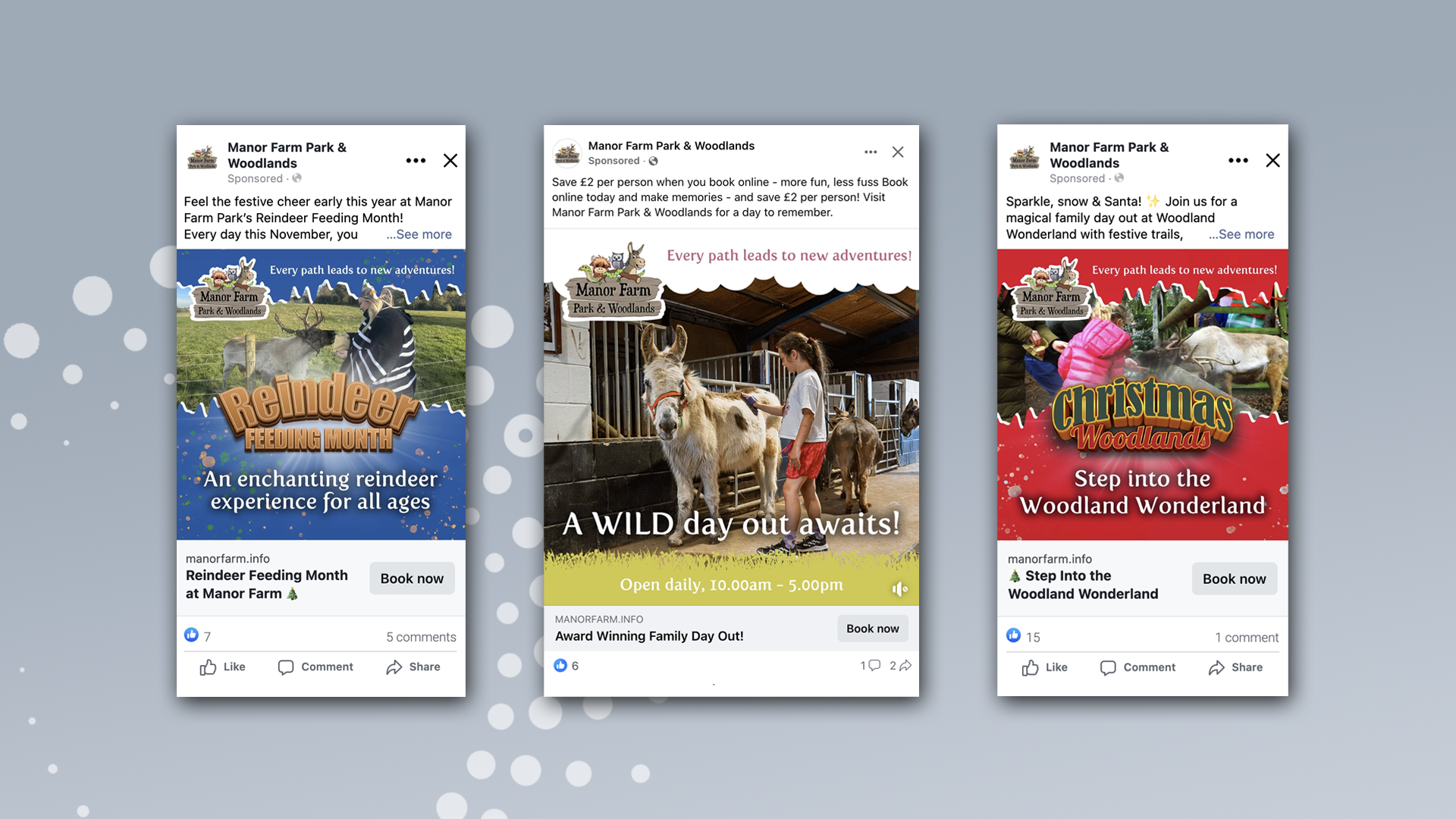 Following a record-breaking year of campaign performance, Manor Farm Park & Woodlands continues to benefit from our data-driven, creative-led marketing approach. By continually testing, refining and aligning campaigns with visitor trends, we’ve helped the brand grow its audience, boost bookings and strengthen its position as one of the East Midlands’ most-loved family destinations.