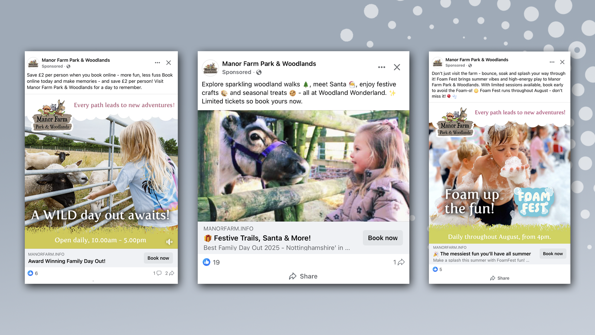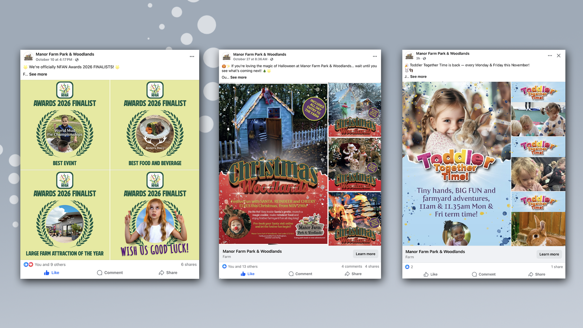 Manor Farm Park & Woodlands wanted to boost visitor numbers across both its year-round attractions and major seasonal events, including PumpkinFest, Foam Fest and the Christmas Woodland Wonderland. While awareness was strong among local families, there was untapped potential to reach new audiences across Nottinghamshire and neighbouring counties.