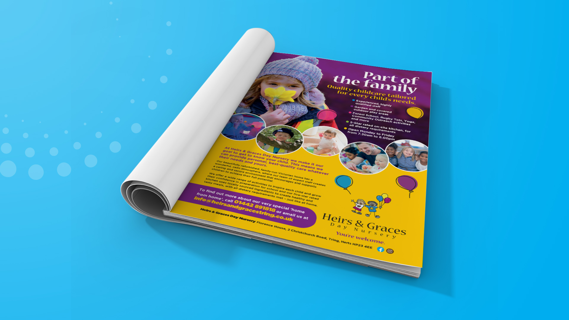 To develop a local marketing campaign for Heirs & Graces Day Nursery in Tring to raise awareness of the nursery, encourage visits and secure registrations to fill all available places for the new academic year.