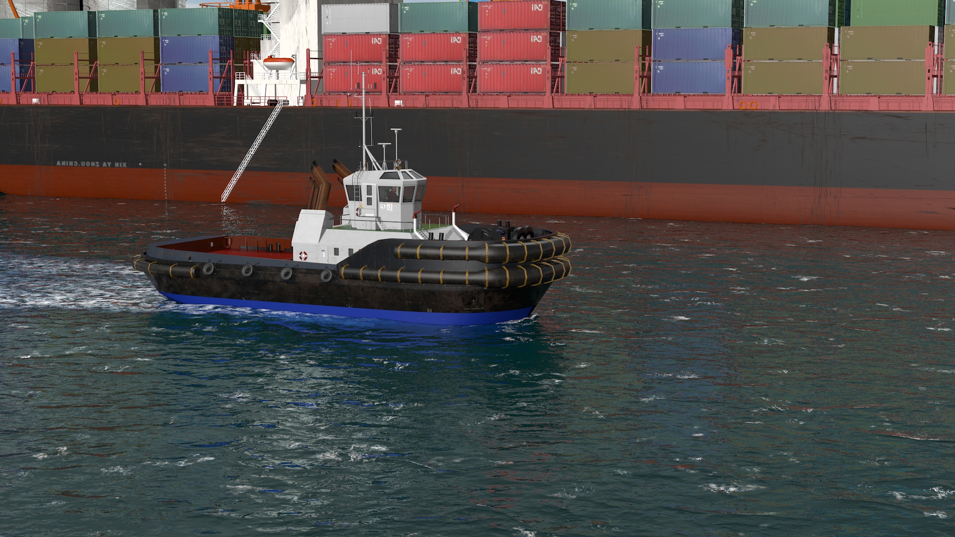 Lighting played a crucial role in establishing a dynamic, cinematic feel; from the sun’s reflection on the water’s surface to subtle shadows cast on each vessel, these details enhanced realism and drew attention to key features. Texturing was also carefully controlled, with surfaces treated to reflect the materials used in real life, ensuring authenticity. The video, shown on an 85-inch screen at the show, provided a visually captivating anchor point for the stand, creating synergy with the booth design, and the interactive environment adapted for a large touchscreen.