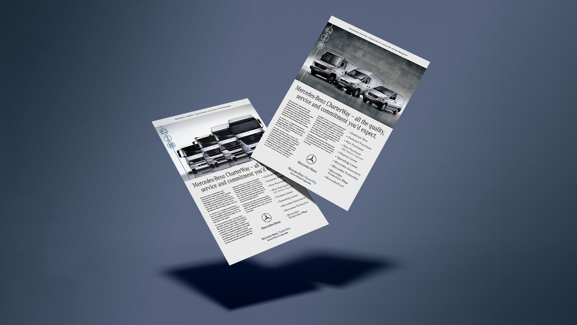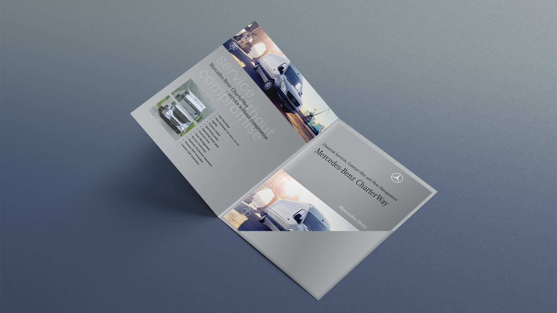 Oyster was approached to produce a range of B2B marketing and PoS materials that supported Mercedes range of financial products for commercial vehicles. Under the Mercedes-Benz CharterWay brand name, the objective was to provide commercial vehicle dealers with a suite of compelling literature that not only clearly communicated the detail of complex financial agreements but also conveyed the customer benefits, while at the same time differentiating these products from competitors.