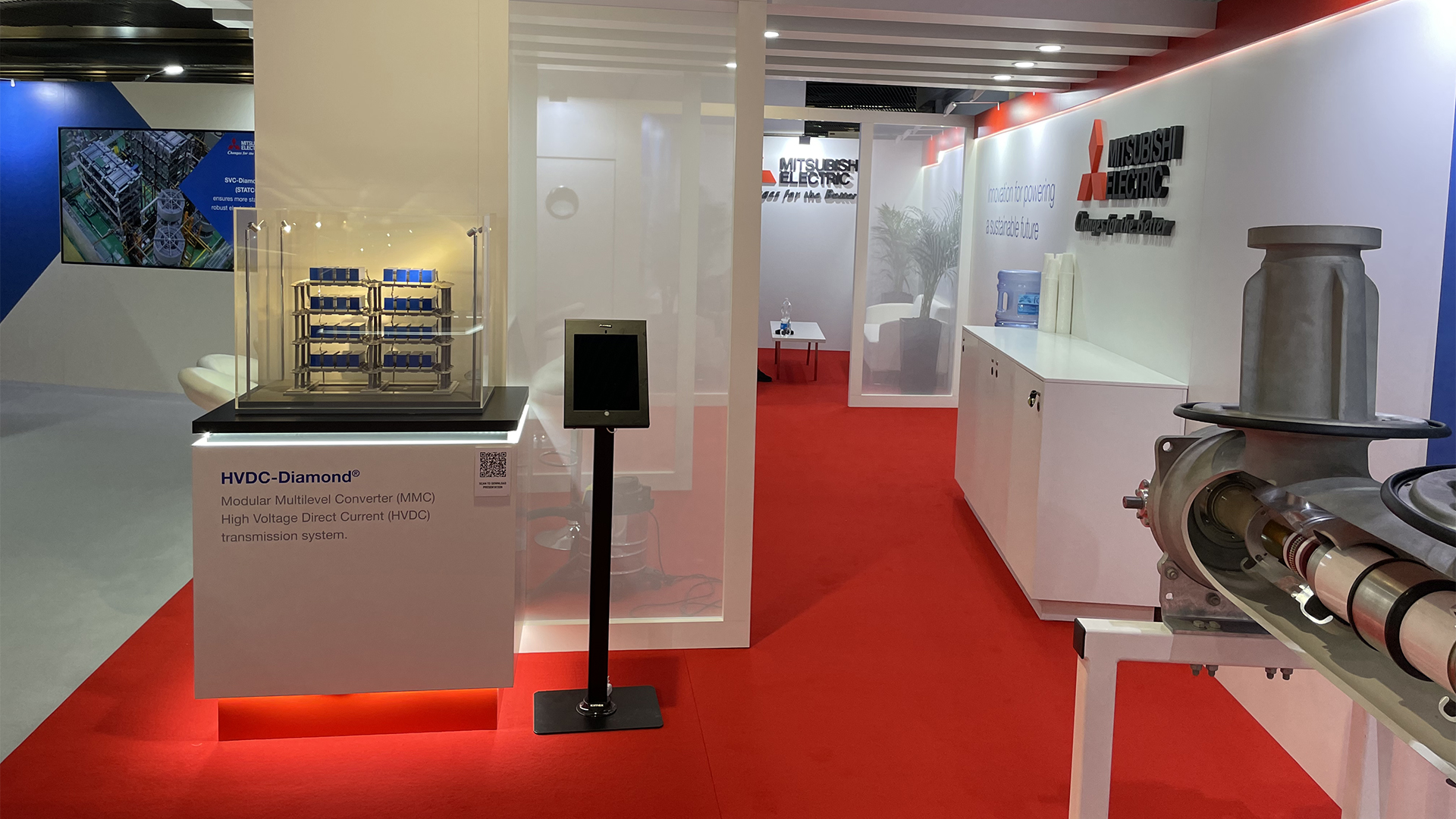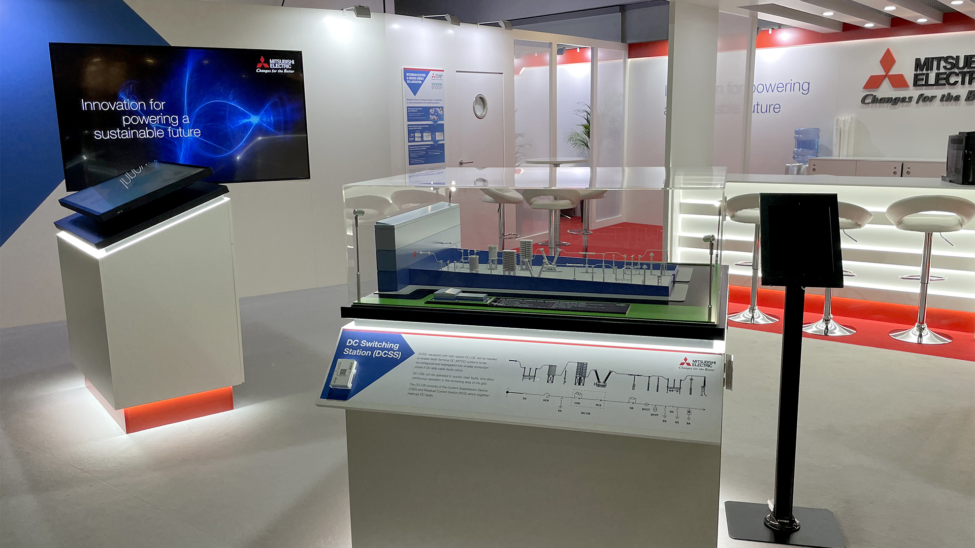 At the heart of the Mitsubishi Electric Power Systems Group’s presence at the event was a stunning 3D-printed bespoke model, meticulously crafted to showcase cutting-edge DCCB grid technology. This centrepiece captured attention and acted as a focal point, flanked by interactive screens on elegant plinths displaying complementary technologies and innovations. The setup emphasised Mitsubishi Electric’s leadership in HVDC solutions, blending physical models with digital interactivity to engage visitors and communicate the brand’s pioneering vision.