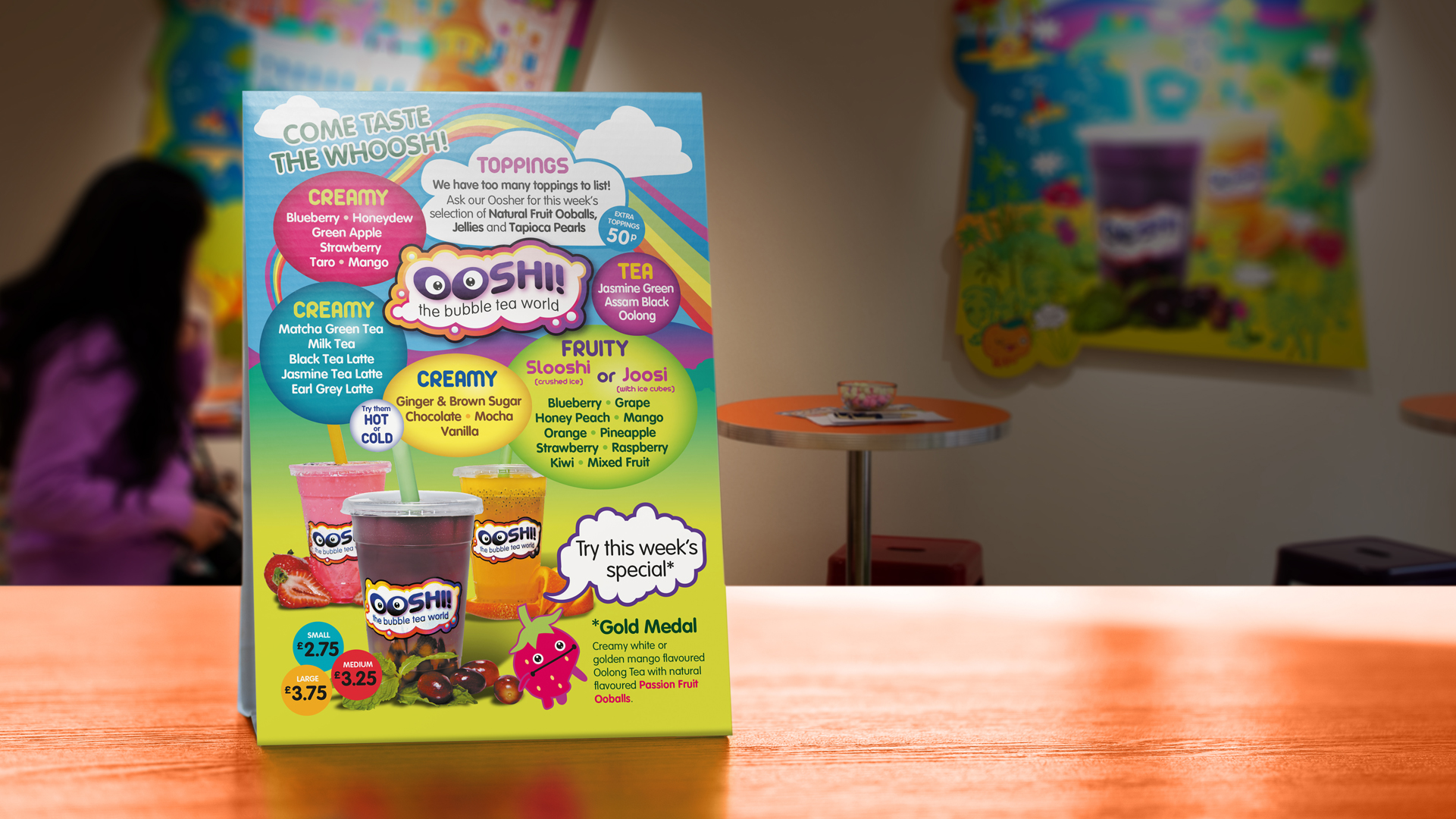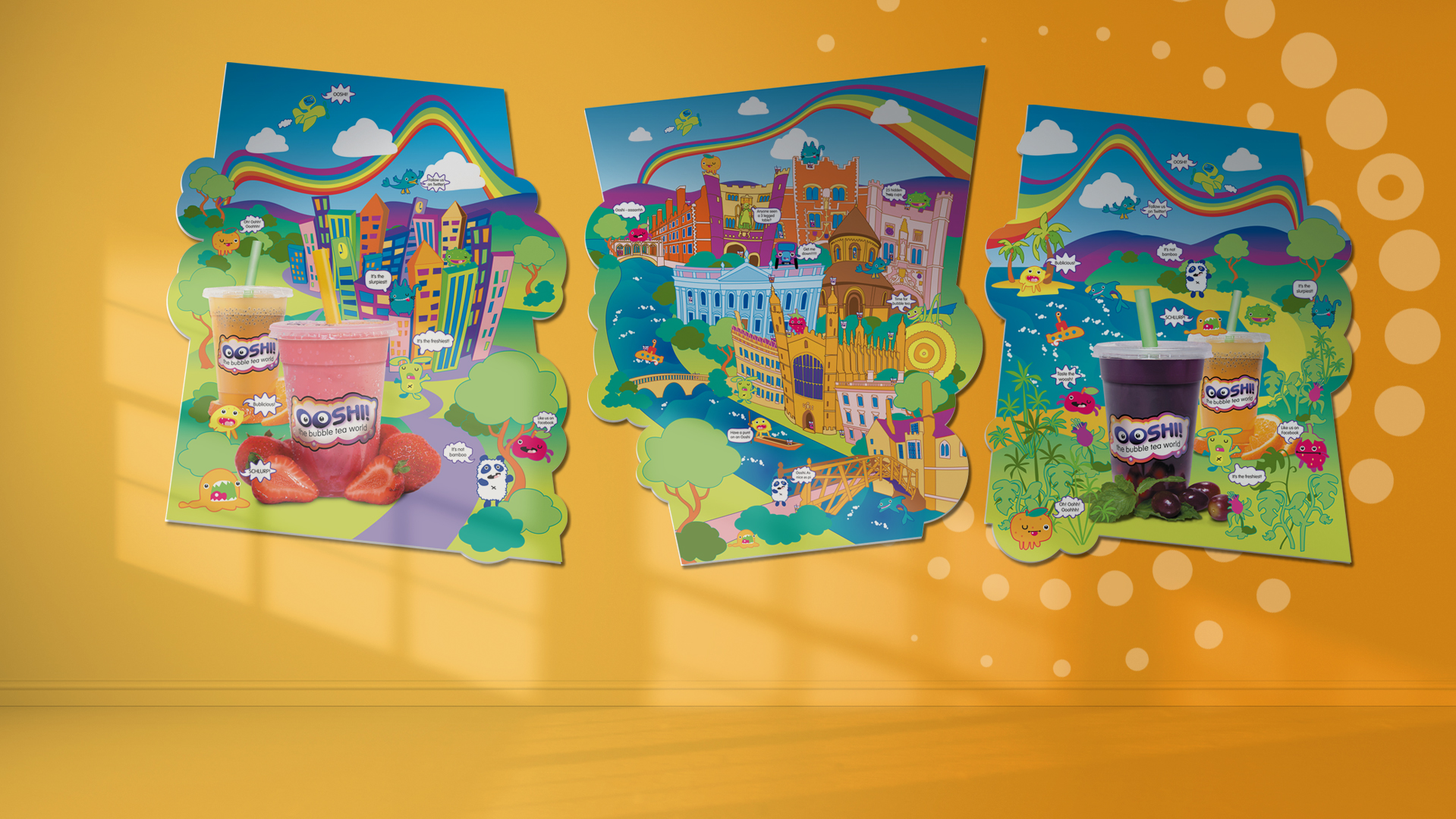 Once again, with their design skill, professionalism and enthusiasm, Oyster Studios has converted a little box into a different world; Ooshi the Bubble Tea World.