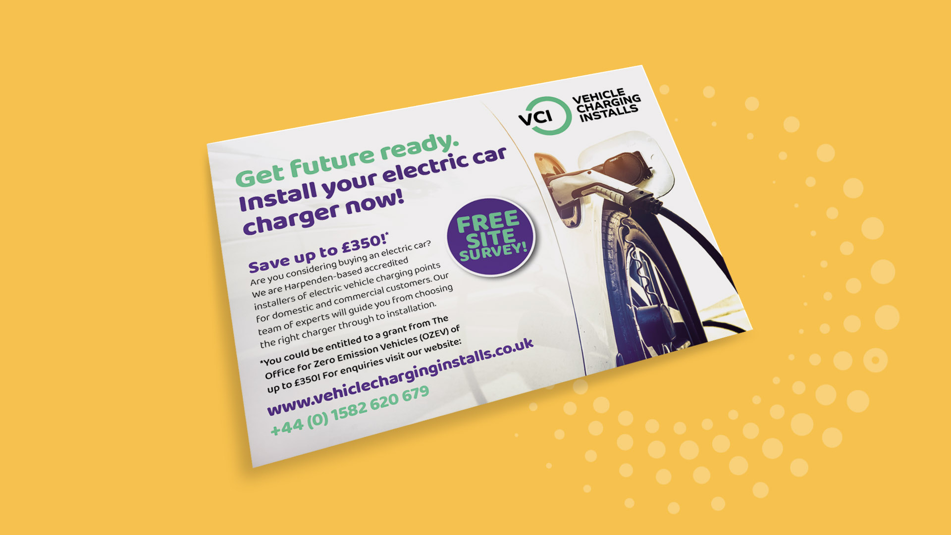 Vehicle Charging Installs Ltd (VCI) is an accredited electric car charging points installer for domestic and commercial use, based in Hertfordshire. As a new company, VCI needed an integrated launch marketing campaign to raise awareness of its service in order to generate business leads.