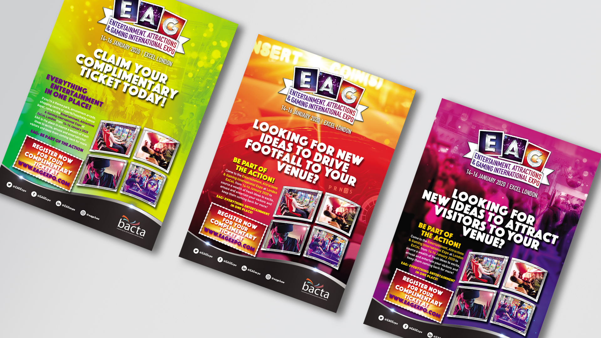 Oyster set about creating new branding for the event to combine EAG and VAE into one show and effectively position it within the amusement and leisure sector. As the EAG name was very well-known in the industry and there was very low awareness of VAE, it made sense to preserve the EAG acronym. EAG had traditionally stood for The European Amusements & Gaming Expo but as the show was actually a global affair, Oyster renamed the new combined show The Entertainment, Attractions & Gaming International Expo to stop it being pigeonholed as a European show and to add visitor attractions to the mix. We then gave the existing website a thorough overhaul, set up new social media pages on Instagram and LinkedIn, and refreshed EAG’s existing pages on Facebook and Twitter with the new branding in preparation for commencing marketing activities.