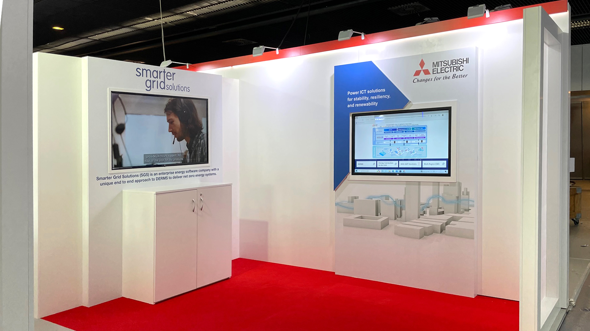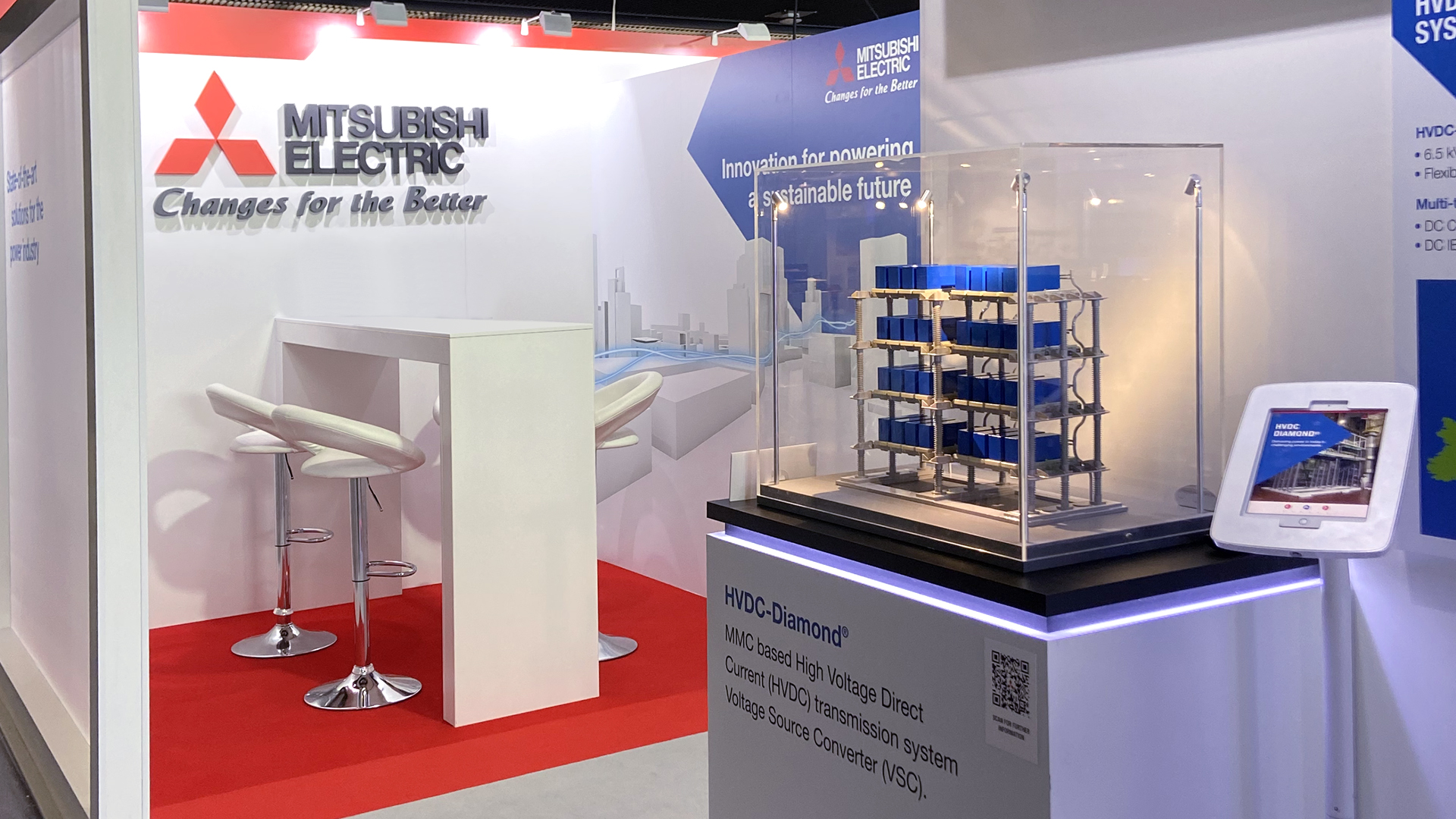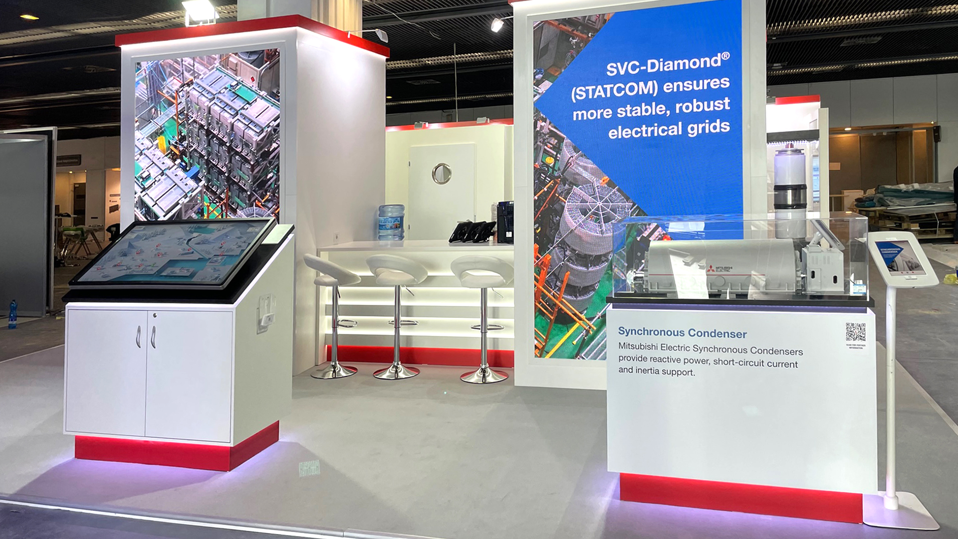 After the success of Cigré 2019, Oyster was approached by Mitsubishi Electric Power Systems Group (PSG) to create an impactful trade exhibition stand design for them at Cigré in Paris 2022. Unfortunately, two large venue columns dominated the centre of the stand and the ceiling height was prohibitively low. With new products and a decision to go digital, we needed to create an original, contemporary and appealing stand to reflect the company’s brand values, attract visitors and help generate new business leads.