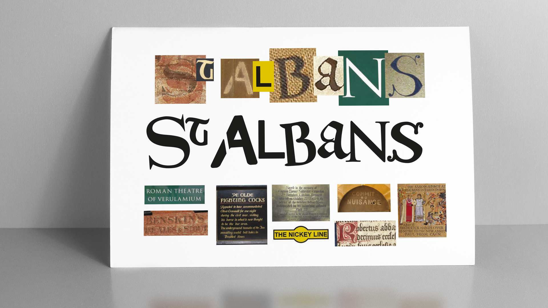 Every letter in the logo represents a piece of history, from the Roman Theatre of Verulanium to the oldest UK pub, Ye Olde Fighting Cocks, to bring the story of St Albans alive and represent it as a relevant, lively and aspirational destination whilst reflecting its history and continuity. A dramatic and energetic city that has been bursting with ideas and life for over a millennia.